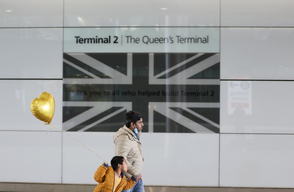 3月18日,旅客走在英國倫敦希思羅機場內(nèi)。新華社記者李穎攝