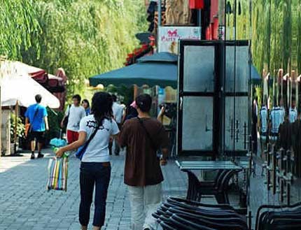 幾乎全體中國居民都參與到了節(jié)日籌備中來。不久前,我在北京最具特色的地方之一---后海玩了一天。在那里,古老的中國胡同與風(fēng)景如畫的湖泊相互映襯,物美價廉的中式飯店與雅致的歐式咖啡館毗鄰,綠樹茂密的枝葉投向湖面,濃蔭為游泳愛好者遮擋著春日驕陽;在那里,人們可以欣賞中國民族樂器古箏的演奏,三輪車夫高聲邀客坐車游胡同。我和姐姐雖然早就地圖在手,但還是擔(dān)心語言不通,不便問路,便坐上一輛三輪車。不過,我們的顧慮看來是多余的。車夫是一個30歲左右的小伙子,英語不錯---是為迎接奧運(yùn)會自學(xué)的。他載著我們穿遍后海的各個僻靜角落,講解它們的歷史和特點(diǎn)。1個半小時的車程才花了20元人民幣。
