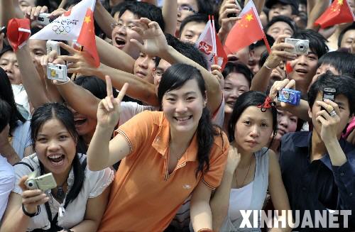 5月7日,廣州群眾為奧運(yùn)圣火傳遞活動加油。當(dāng)日,北京奧運(yùn)圣火傳遞活動在廣東省廣州市舉行!⌒氯A社記者劉大偉攝
