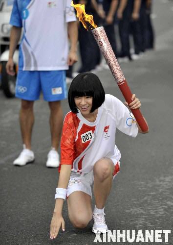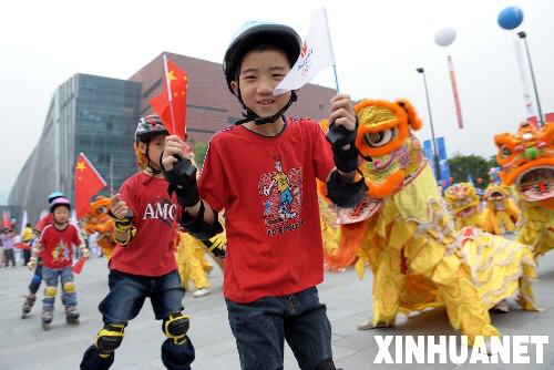 5月7日,北京奧運(yùn)圣火傳遞活動在廣東省廣州市舉行。這是少年兒童在起跑儀式上進(jìn)行輪滑表演。 新華社記者劉力航攝