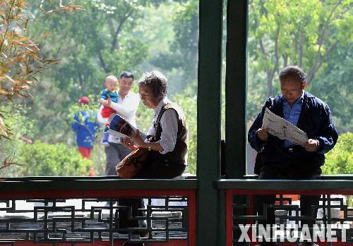 5月6日,兩位市民在公園的長廊內(nèi)閱讀報紙和雜志。 當(dāng)日,一座集生態(tài)、環(huán)保、景觀、節(jié)能、應(yīng)急避險等功能于一體的環(huán)保型綠色生態(tài)公園――宣武藝園正式對外開放。去年3月,北京市宣武區(qū)對宣武藝園實施全面改造,在保留原有建筑、樹木、地形的基礎(chǔ)上,規(guī)劃了八個具有獨(dú)特功能的生態(tài)景區(qū)。近年來,北京市加大城市綠地建設(shè),相繼建成了一批城市綠地、環(huán)保生態(tài)公園等,充分體現(xiàn)了“綠色奧運(yùn)”理念的成果。 新華社記者 王頌 攝