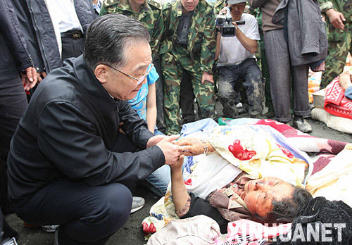 報(bào)道還說(shuō),在視察許多受到嚴(yán)重破壞的學(xué)校中的一所時(shí),溫家寶穿行于泥水、水泥碎塊和瓦礫堆之間,當(dāng)看到營(yíng)救人員在努力挖掘兩名被困孩子時(shí)“熱淚盈眶”。