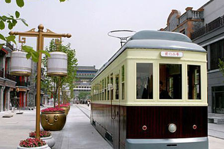 如果到游客們喜愛的琉璃廠古玩街參觀,也可能見到北京目前最神秘的建設(shè)工程:前門大街的復(fù)古改造。今后將在宏偉的前門城樓以南形成一條充滿中國特色的步行街。前門大街上還將開通有軌電車,首批車輛已經(jīng)開始試運(yùn)行。而大街兩側(cè)的傳統(tǒng)木質(zhì)建筑則在為同樣具有傳統(tǒng)味的旅游項(xiàng)目做廣告。