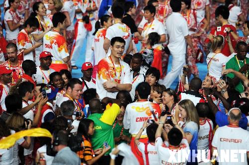 這是各國運(yùn)動員和姚明合影。 新華社記者楊磊攝