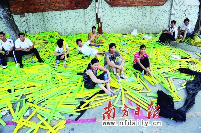 東莞市樟木頭鎮(zhèn)俊領(lǐng)玩具廠外,失業(yè)的工人們正在等候領(lǐng)取工資,玩具的半成品散落一地。蘇仕日攝 (來源:南方日報)
