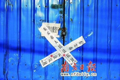 俊領(lǐng)玩具廠大門被貼上封條。蘇仕日攝 (來源:南方日報)