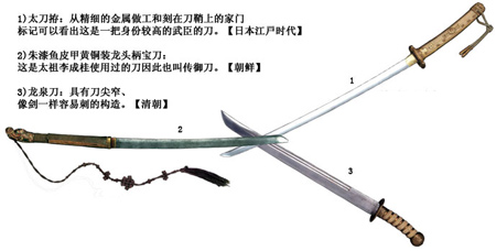 1-3分別為日本、韓國(guó)和中國(guó)的刀