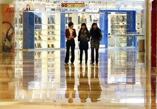 2008年11月17號,女士們路過北京一家安靜的商場。在經(jīng)濟(jì)增長放緩形勢下,中國將投資5860億美元來制造就業(yè)機會。