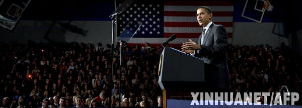 2月18日,在美國亞利桑那州的梅薩,美國總統(tǒng)奧巴馬就住房救援計劃發(fā)表講話。 新華社/法新