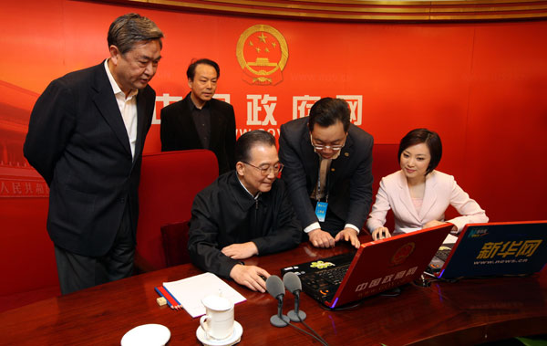 2月28日,中共中央政治局常委、國務院總理溫家寶進入中國政府網訪談室,與網友在線交流并接受中國政府網、新華網聯合專訪。 新華社記者姚大偉 攝