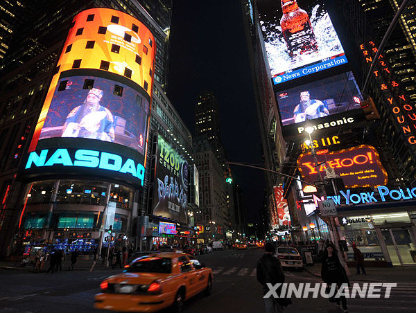 播放《赤壁》片段的8塊大屏幕分別安裝在3幢建筑上,最大的一塊是納斯達(dá)克證券交易所的專屬屏幕,一塊位于著名的新年倒計(jì)時(shí)高樓上,其他6塊屬于路透社,而在這8塊屏幕下方就是一個(gè)大三角地和一個(gè)大十字路口,來往的車流人流熙熙攘攘。