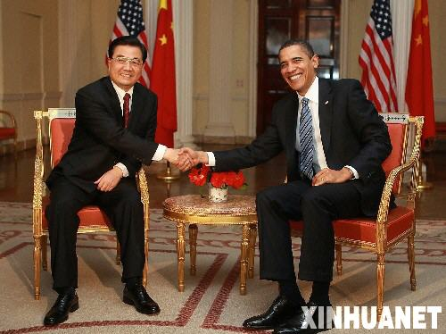 4月1日,出席二十國集團(tuán)領(lǐng)導(dǎo)人第二次金融峰會(huì)的國家主席胡錦濤在倫敦會(huì)見美國總統(tǒng)奧巴馬。 新華社記者鞠鵬 攝