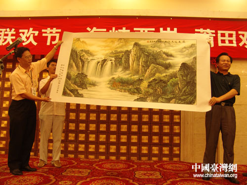 從南少林寺回到賓館,莆田接待工作組為臺(tái)灣來的客人們準(zhǔn)備了豐盛的晚宴和節(jié)目表演,現(xiàn)場(chǎng)氣氛熱鬧溫馨,臺(tái)灣十杰基金會(huì)和莆田市的代表還互贈(zèng)禮物留作紀(jì)念。(鐘寶華)