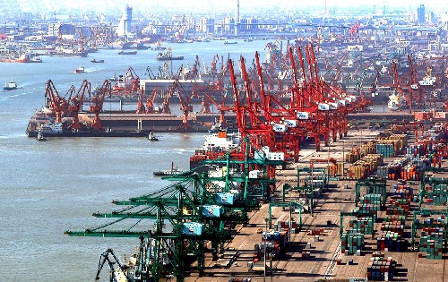 這是天津港集裝箱碼頭(2005年12月23日攝)。連續(xù)三年保持兩位數(shù)增長的中國經(jīng)濟(jì),今年以來增勢依然強(qiáng)勁。與此同時(shí),經(jīng)濟(jì)增長中也一度出現(xiàn)了投資增長過快、信貸投放過多等問題。中央及時(shí)采取有針對性的宏觀調(diào)控措施,經(jīng)濟(jì)運(yùn)行中的不穩(wěn)定因素得到了初步抑制,經(jīng)濟(jì)保持了既快又好的發(fā)展勢頭。新華社發(fā)