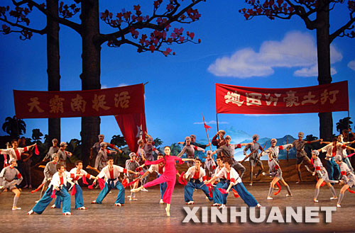 9月25日,中央芭蕾舞團(tuán)的演員在國家大劇院歌劇院表演《紅色娘子軍》。新華社記者羅曉光攝