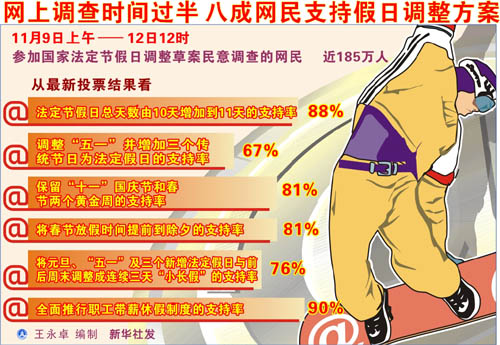 圖表:90%網(wǎng)民支持全面推行職工帶薪休假制度。新華社發(fā)