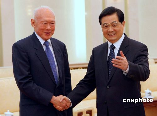 十一月十六日,中國國家主席胡錦濤在北京人民大會(huì)堂會(huì)見來訪的新加坡內(nèi)閣資政李光耀。 中新社發(fā) 任海霞 攝