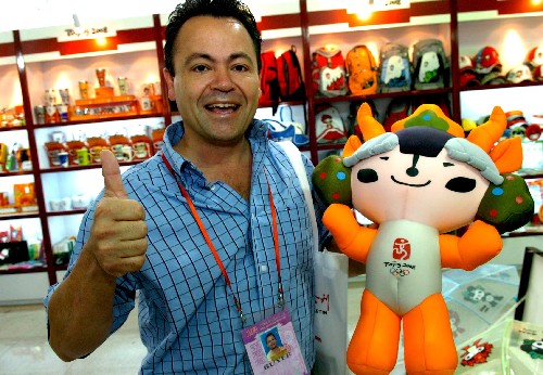 10月29日,一名來(lái)自危地馬拉的客商在第102屆中國(guó)進(jìn)出口商品交易會(huì)(廣交會(huì))展館中拿起中國(guó)制造的奧運(yùn)吉祥物福娃連連夸好。雖然不久前中國(guó)玩具在美國(guó)遭遇召回風(fēng)波,但在此次廣交會(huì)上,中國(guó)玩具、尤其是奧運(yùn)吉祥物福娃仍然受到外商青睞。中國(guó)玩具制造商更加注重產(chǎn)品質(zhì)量和安全性,出口價(jià)格普遍上漲。 新華社記者 壯錦 攝