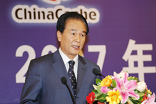 中國網(wǎng)絡(luò)媒體2007年度新聞風(fēng)云榜揭曉典禮開始,圖為國務(wù)院新聞辦副主任蔡名照在中國網(wǎng)絡(luò)媒體新聞風(fēng)云榜揭曉儀式上的致辭。陳競超 攝