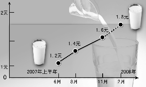 劉先生告訴記者,他家一直訂的衛(wèi)崗天元奶,2007年上半年的時(shí)候還是1.2元一瓶,2007年8月份漲到了1.4元,11月又漲了2毛到1.6元,時(shí)隔2個(gè)月,又要從1.6元漲到1.8元,算起來(lái),這半年里,連漲兩次,每次都漲2毛錢(qián),漲幅已經(jīng)遠(yuǎn)遠(yuǎn)超過(guò)10%!面對(duì)如此不斷的漲價(jià),劉先生說(shuō)自己得考慮是不是該少訂點(diǎn)了!
