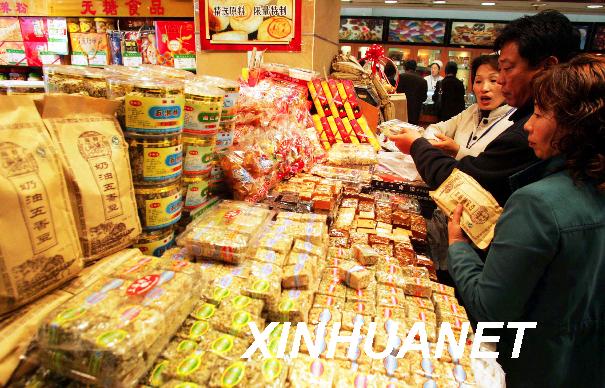 資料圖片:2007年11月13日,消費者在上海南京路上的一家食品商店內(nèi)選購商品。當(dāng)日,國家統(tǒng)計局公布的數(shù)據(jù)顯示,由于季節(jié)變化鮮菜價格上漲較快,以及入秋以來豬肉消費量增價漲,10月份居民消費價格總水平,比去年同月上漲6.5%,比上月上漲0.3%。1至10月累計,居民消費價格總水平同比上漲4.4%。新華社記者 裴鑫 攝