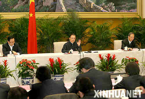 1月27日,國務院召開電視電話會議,針對當前大范圍雨雪冰凍災害給煤電油運造成的嚴重影響,部署各項保障工作。中共中央政治局常委、國務院總理溫家寶出席會議并作重要講話。 新華社記者馬占成攝