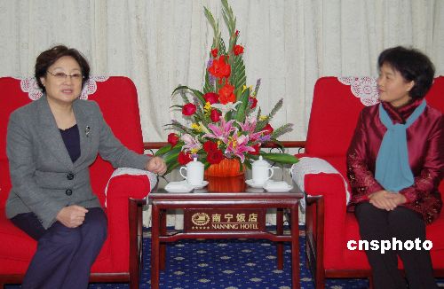 2月2日晚,在僑鄉(xiāng)廣西遭遇嚴(yán)重雨雪冰凍災(zāi)害急需援助之際,中國國務(wù)院僑辦主任李海峰女士(左)一行從北京飛赴南寧進(jìn)行慰問,并與廣西自治區(qū)人大常委會副主任、廣西紅十字會會長劉新文進(jìn)行會談,隨后李海峰代表國務(wù)院僑辦和海外僑胞向廣西災(zāi)區(qū)民眾捐助一百萬元人民幣。 中新社發(fā) 劉萬強(qiáng) 攝