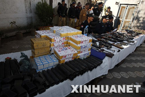 2月17日,巴基斯坦警方在拉瓦爾品第市警察局舉行違禁武器清剿新聞發(fā)布會(huì)。巴基斯坦議會(huì)選舉將于2月18日舉行,全國將開放3.58萬個(gè)投票站。屆時(shí)將有8千多萬名選民參加投票。警方在投票站部署大量警力,以保障投票的順利進(jìn)行。 新華社記者才揚(yáng)攝
