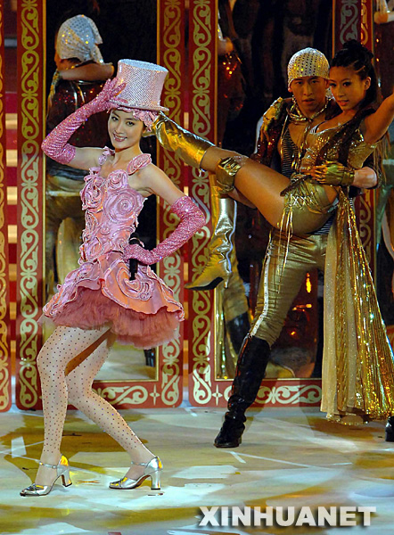 資料圖片:2007年6月30日晚,慶祝香港回歸祖國(guó)十周年文藝晚會(huì)在香港會(huì)展中心舉行。這是藝人陳慧琳(左)在表演。 新華社記者 公磊 攝