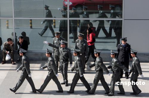 資料圖:2007年11月29日,來(lái)自全國(guó)保安工作座談會(huì)的消息,目前中國(guó)有保安服務(wù)企業(yè)2500多家,保安從業(yè)人員達(dá)300萬(wàn)人。 中新社發(fā) 吳芒子 攝