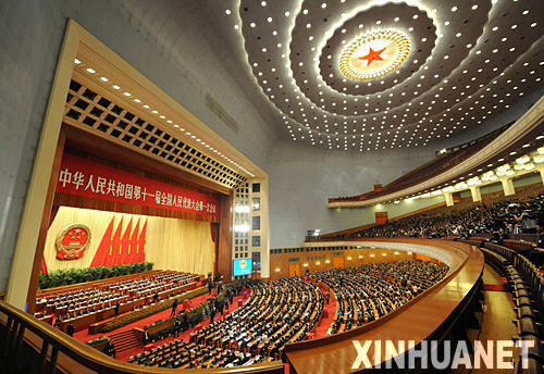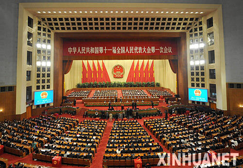3月17日,十一屆全國(guó)人大一次會(huì)議在北京人民大會(huì)堂舉行第七次全體會(huì)議。決定國(guó)務(wù)院副總理、國(guó)務(wù)委員、各部部長(zhǎng)、各委員會(huì)主任、中國(guó)人民銀行行長(zhǎng)、審計(jì)長(zhǎng)、秘書(shū)長(zhǎng)人選;表決全國(guó)人大各專門委員會(huì)組成人員。這是大會(huì)會(huì)場(chǎng)。 新華社記者王建華攝