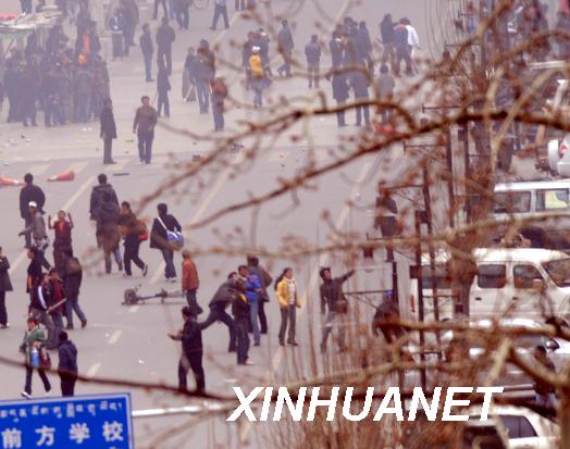 3月14日中午,在拉薩市朵森格路,不法分子在向路邊商鋪、汽車扔石頭。這是一起駭人聽聞的嚴(yán)重暴力犯罪事件。3月14日,一群不法分子在西藏自治區(qū)首府拉薩市區(qū)的主要路段實施打砸搶燒,焚燒過往車輛,追打過路群眾,沖擊商場、電信營業(yè)網(wǎng)點(diǎn)和政府機(jī)關(guān),給當(dāng)?shù)厝嗣袢罕娚敭a(chǎn)造成重大損失,使當(dāng)?shù)氐纳鐣刃蚴艿搅藝?yán)重破壞。事后查明,這天,不法分子縱火300余處,拉薩908戶商鋪、7所學(xué)校、120間民房、5座醫(yī)院受損,砸毀金融網(wǎng)點(diǎn)10個,至少20處建筑物被燒成廢墟,84輛汽車被毀。有18名無辜群眾被燒死或砍死,受傷群眾達(dá)382人,其中重傷58人。拉薩市直接財產(chǎn)損失達(dá)24468.789萬元。 這是一場反對分裂,維護(hù)祖國統(tǒng)一和民族團(tuán)結(jié)的斗爭。 為了盡快恢復(fù)正常的社會秩序,西藏自治區(qū)黨委、政府組織公安、武警,對在拉薩街頭十分猖狂地進(jìn)行打砸搶燒的不法分子依法打擊,迅速平息了事態(tài),維護(hù)了社會穩(wěn)定,維護(hù)了國家法制,維護(hù)了西藏各族群眾的根本利益。根據(jù)目前掌握的情況,這起嚴(yán)重的暴力犯罪事件是由達(dá)賴集團(tuán)有組織、有預(yù)謀、精心策劃煽動的,是由境內(nèi)外“藏獨(dú)”分裂勢力相互勾結(jié)制造的。 新華社記者 格桑達(dá)瓦 攝