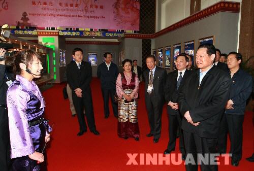 4月30日,中共中央政治局常委李長春來到北京民族文化宮,參觀正在這里舉辦的“西藏今昔”大型主題展。 新華社記者 馬占成 攝