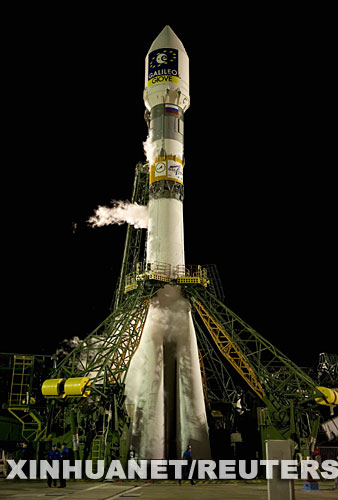 4月27日,在哈薩克斯坦境內(nèi)的拜科努爾發(fā)射場,運(yùn)載歐洲伽利略全球衛(wèi)星導(dǎo)航系統(tǒng)(簡稱伽利略計劃)第二顆試驗衛(wèi)星的俄羅斯“聯(lián)盟”運(yùn)載火箭佇立在發(fā)射臺上。運(yùn)載火箭搭載著這顆名為GIOVE-B的試驗衛(wèi)星于莫斯科時間27日2時16分(北京時間6時16分)成功升空。新華社/路透