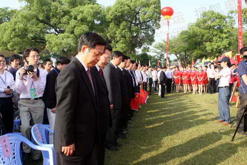 圣火瑞金傳遞,起跑前全場為四川地震災(zāi)區(qū)死難者默哀一分鐘 奧運官網(wǎng)記者 李威/攝