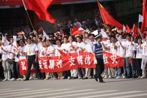 市民手拿抗震救災(zāi)橫幅 奧運官網(wǎng)記者 李志巖/攝