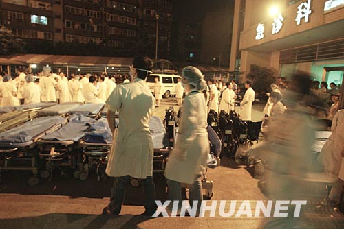 資料圖片:5月14日,華西醫(yī)院的醫(yī)護(hù)人員時刻準(zhǔn)備著迎接被送進(jìn)醫(yī)院的災(zāi)區(qū)傷員。截至當(dāng)日22時,成都華西醫(yī)院共接收各地受災(zāi)病人663人,14日當(dāng)天共接收受災(zāi)病人322人,其中震中汶川病人162人。 新華社記者 鄭悅 攝