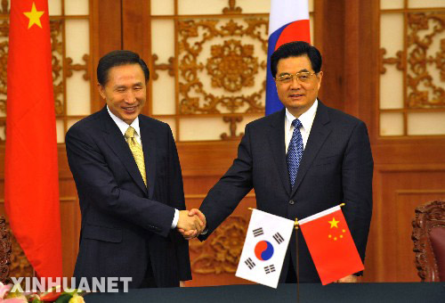 李明博表示,對(duì)華關(guān)系是韓國(guó)外交軸心之一。韓方高度重視進(jìn)一步深化兩國(guó)關(guān)系,此次雙方同意將韓中全面合作伙伴關(guān)系提升為戰(zhàn)略合作伙伴關(guān)系,將為兩國(guó)關(guān)系發(fā)展開(kāi)辟?gòu)V闊前景。韓方希望保持兩國(guó)高層互訪,加強(qiáng)各層次磋商,密切雙方在國(guó)際和地區(qū)問(wèn)題上的協(xié)調(diào)合作,擴(kuò)大人員交往,特別是青少年交流,積極深化和拓展雙方在投資、金融、通信、能源、環(huán)保、科技、新能源開(kāi)發(fā)利用等領(lǐng)域的互利合作,歡迎中國(guó)企業(yè)赴韓投資,支持韓方企業(yè)來(lái)華發(fā)展,促進(jìn)雙方中小企業(yè)間的合作。李明博強(qiáng)調(diào),韓方愿成為中國(guó)真正的伙伴,與中方共同努力,推進(jìn)兩國(guó)關(guān)系向更深、更廣、內(nèi)涵日趨豐富的方向發(fā)展,并為促進(jìn)東北亞地區(qū)的和平穩(wěn)定作出積極貢獻(xiàn)。