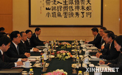 5月27日,國(guó)家主席胡錦濤與來(lái)訪的韓國(guó)總統(tǒng)李明博舉行小范圍會(huì)談。 當(dāng)日,韓國(guó)總統(tǒng)李明博抵達(dá)北京,開(kāi)始對(duì)中國(guó)進(jìn)行為期4天的國(guó)事訪問(wèn)。 新華社記者 樊如鈞 攝