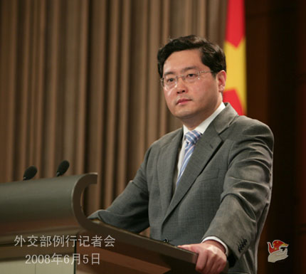 2008年6月5日下午,外交部發(fā)言人秦剛舉行例行記者會,就習(xí)近平副主席出訪、朝核、伊朗核、達爾富爾等問題答問。