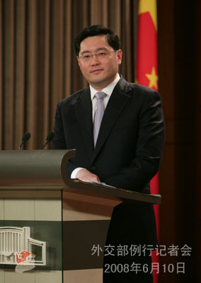 2008年6月10日,外交部發(fā)言人秦剛舉行例行記者會,就聯(lián)合國秘書長潘基文將訪華、朝日將舉行雙邊會談、蘇丹副總統(tǒng)塔哈訪華等問題回答了記者提問。