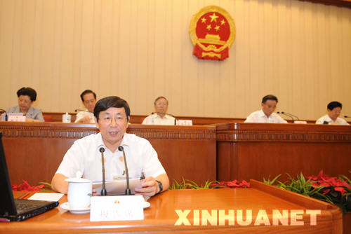 6月26日,第十一屆全國(guó)人大常委會(huì)在北京人民大會(huì)堂舉行第四講專題講座,題目是《中國(guó)地震災(zāi)害與防震減災(zāi)》。吳邦國(guó)委員長(zhǎng)主持講座。這是中國(guó)地震局地質(zhì)研究所所長(zhǎng)、國(guó)家汶川地震專家委員會(huì)南北帶地震構(gòu)造研究組組長(zhǎng)張培震在發(fā)言。 新華社記者 高潔 攝