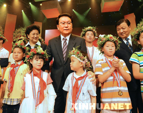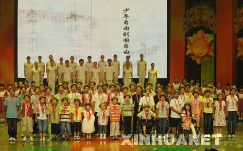 6月27日,獲得抗震救災(zāi)“英雄少年”稱號(hào)的孩子們?cè)谘莩枨队⑿凵倌辍贰?當(dāng)晚,2008抗震救災(zāi)英雄少年頒獎(jiǎng)晚會(huì)在北京舉行。 新華社記者 高潔 攝