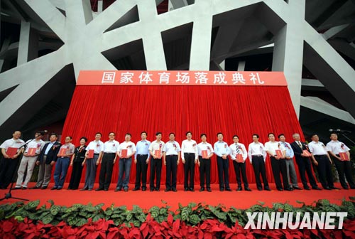 6月28日,與會(huì)領(lǐng)導(dǎo)與獲頒紀(jì)念證書的國(guó)家體育場(chǎng)參建單位代表合影。當(dāng)日,國(guó)家體育場(chǎng)(鳥巢)舉行落成典禮。國(guó)家體育場(chǎng)是2008年第29屆夏季奧運(yùn)會(huì)主體育場(chǎng),位于奧林匹克公園內(nèi),建筑面積25.8萬(wàn)平方米,賽時(shí)坐席9.1萬(wàn)個(gè),北京奧運(yùn)會(huì)的開閉幕式、田徑比賽和足球決賽將在此舉行。新華社記者 羅曉光 攝