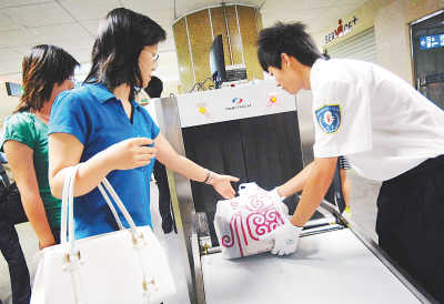 為保障奧運(yùn)會(huì)順利進(jìn)行,北京從六月二十九日至九月二十日,對(duì)地鐵全線實(shí)施安全檢查。圖為二十九日,工作人員對(duì)地鐵乘客攜帶的物品進(jìn)行安檢。本報(bào)記者 李維娜攝