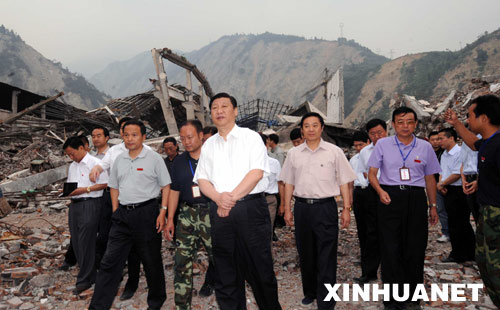 這是6月29日,習(xí)近平在汶川映秀鎮(zhèn)察看地震廢墟。 新華社記者 饒愛民 攝