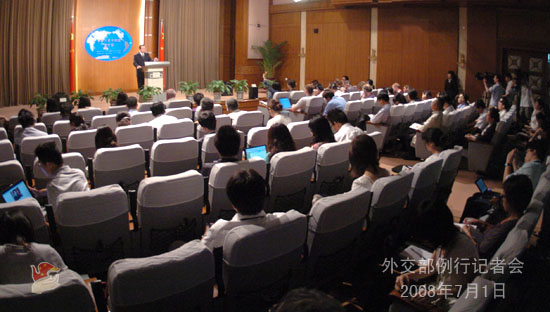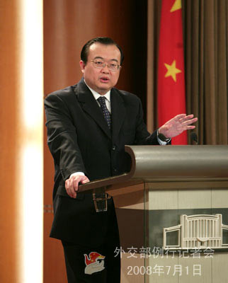 2008年7月1日下午,外交部發(fā)言人劉建超舉行例行記者會,就胡錦濤主席將出席八國集團同有關(guān)國家領(lǐng)導人對話會議、六方會談、津巴布韋局勢、中央有關(guān)部門與達賴私人代表接觸等答問。