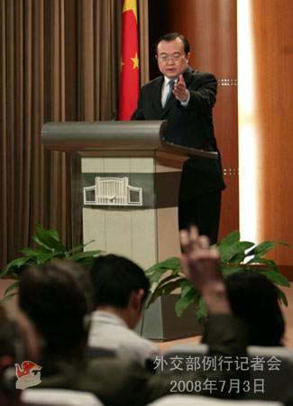2008年7月3日下午,外交部發(fā)言人劉建超舉行例行記者會,就墨西哥總統(tǒng)訪華、蒙古局勢、六方會談、外國領(lǐng)導(dǎo)人出席北京奧運會等答問。