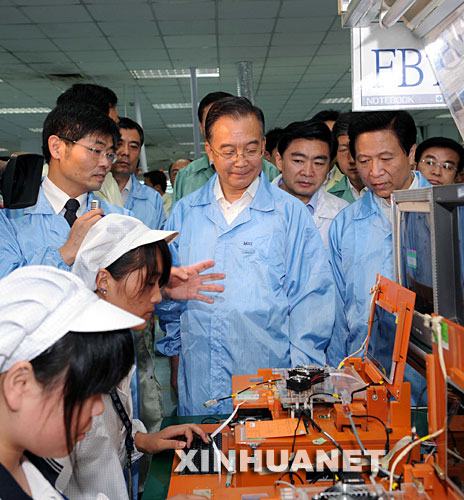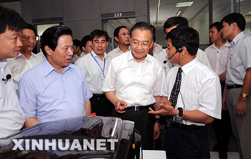 7月4日至6日,中共中央政治局常委、國(guó)務(wù)院總理溫家寶在江蘇、上海就經(jīng)濟(jì)運(yùn)行情況進(jìn)行調(diào)查研究。這是7月5日,溫家寶在江蘇微盟電子考察。新華社記者 饒愛(ài)民 攝