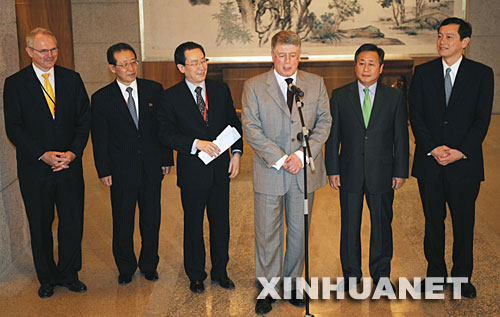 秦剛在當(dāng)日晚間舉行的記者會(huì)上介紹了團(tuán)長(zhǎng)會(huì)的有關(guān)進(jìn)程。他說,兩天來,六方團(tuán)長(zhǎng)一直在開會(huì)討論,氣氛良好,態(tài)度務(wù)實(shí),節(jié)奏高效,總體進(jìn)展順利。團(tuán)長(zhǎng)會(huì)討論了建立驗(yàn)證和監(jiān)督機(jī)制的具體原則,以及向朝方提供經(jīng)濟(jì)能源援助問題,達(dá)成了一些具體共識(shí)。